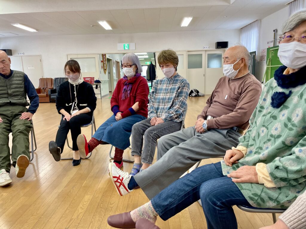 この日は、大浜中東区会の健康データをもとに地域特有の課題について考えたり、体を動かして楽しめる「モルック」を体験したりと、健康をテーマに充実した時間を過ごしました。