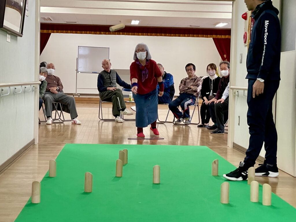 健康学習会に参加された方々は、モルックを通じて交流を深め、笑顔で楽しんでいました。