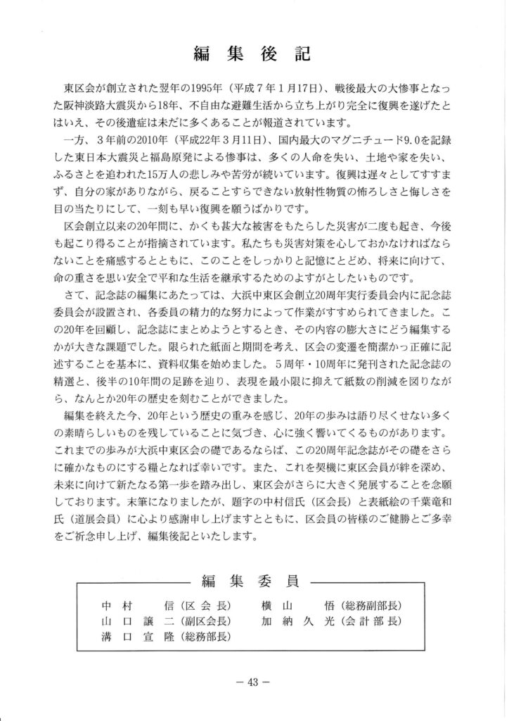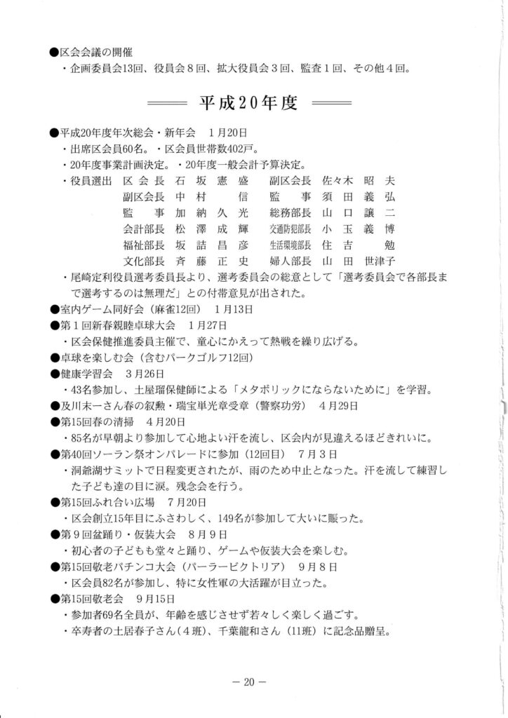 区会創立20周年 記念誌